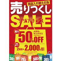 2026年2月19日(木)まで、メガネ・サングラスが最大50%OFFとなる「売りつくしクリアランスSALE」を開催いたします。さらに今なら、同時購入で2,000円引きと大変お得に! 新生活への準備や、度付きサングラスとのセット買いなど、この機会をぜひご利用ください。在庫に限りがございますので、お早めのご来店を心よりお待ちしております。